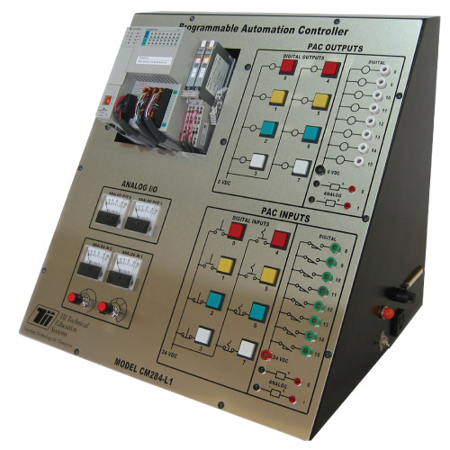The CM284-L1 is a complete industrial-based PLC training system featuring Allen-Bradley’s RSLogix 5000 programming software. The Compact Logix platform is a powerful series of programmable automation controllers. This trainer will allow learners to develop competence in operating, programming, and troubleshooting a true industrial PLC.